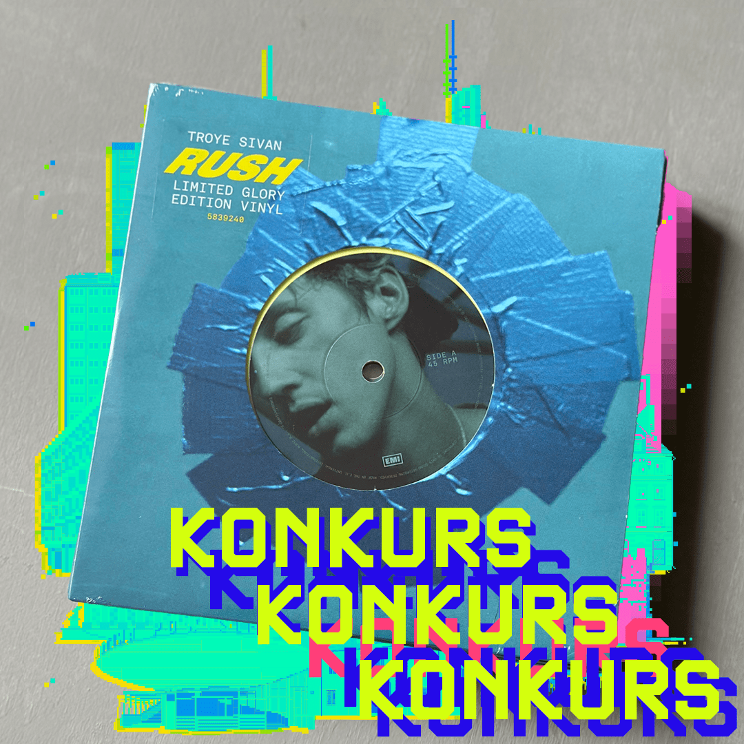"alt": "zdjęcie konkursowe przedstawiające płytę winylową singla Troye'a Sivana \"Rush\"",